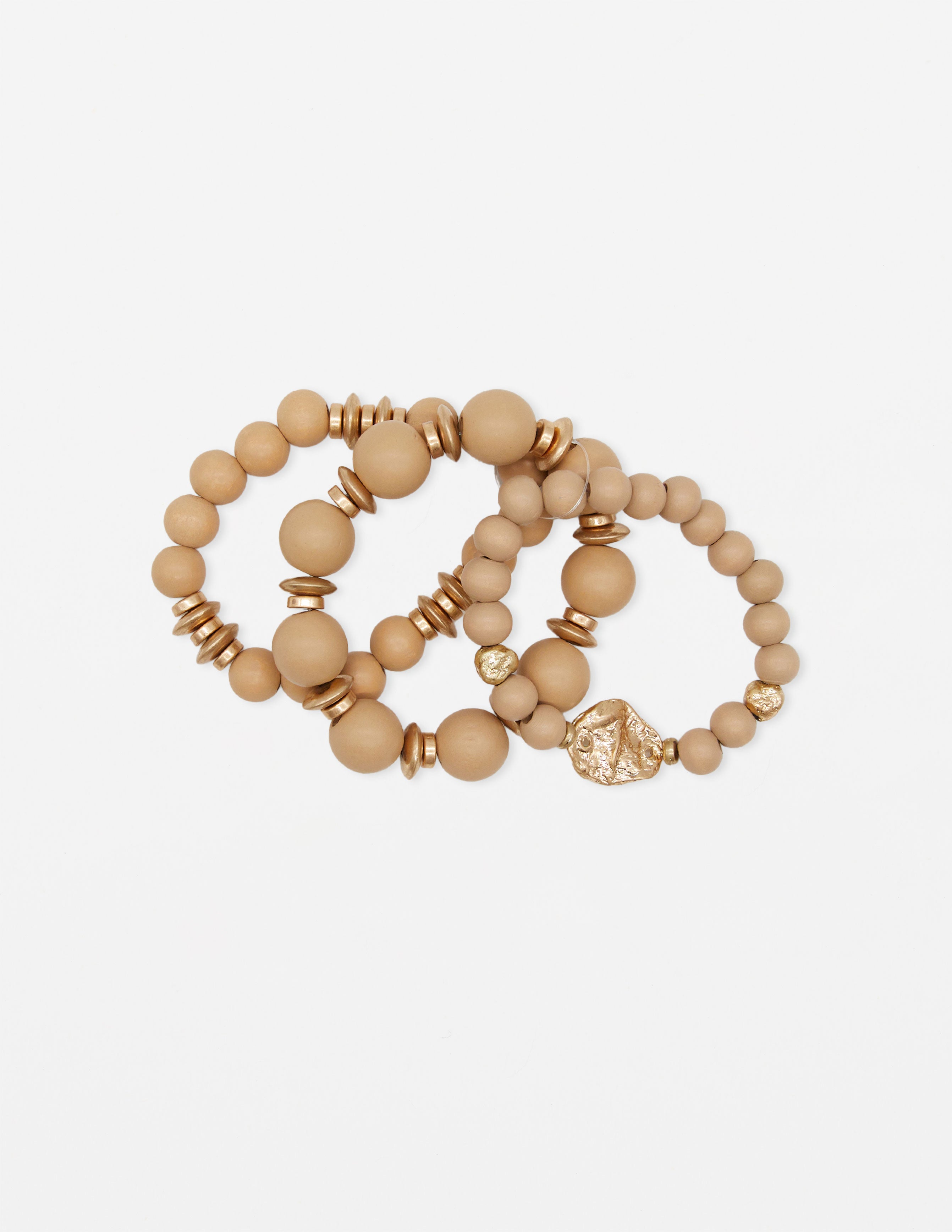 Set of 3 Neutral Wood Beads Bracelet