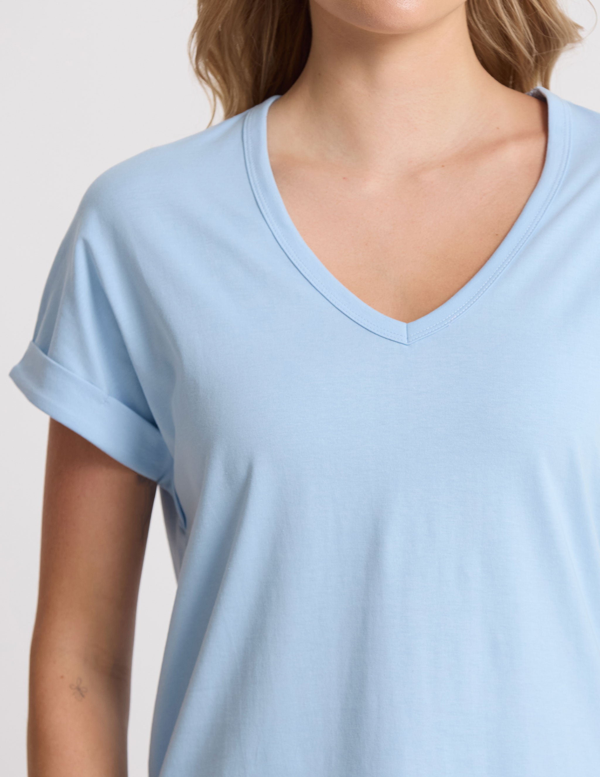 Soho Cuff V Tee - Sky