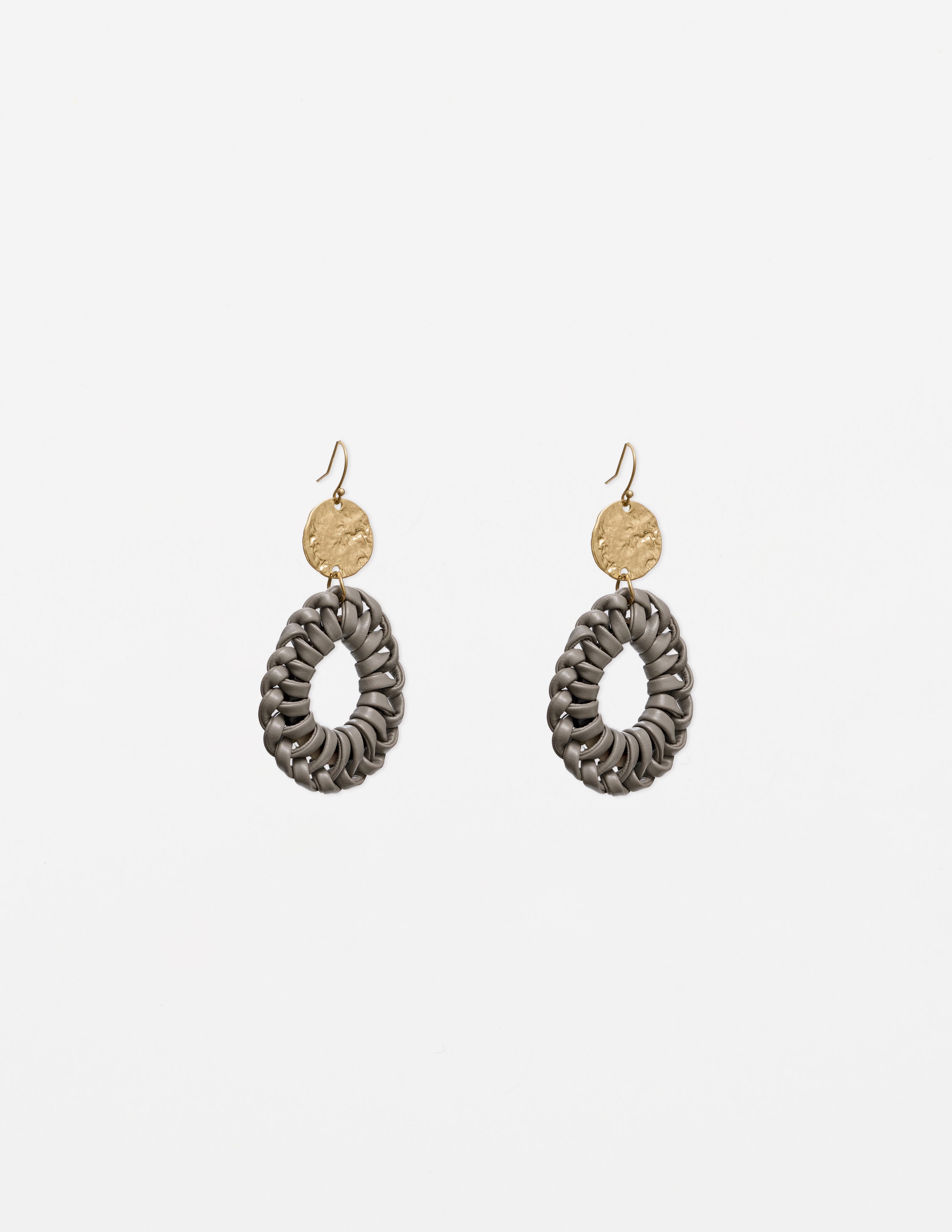 Oval Earrings - Grey Leather