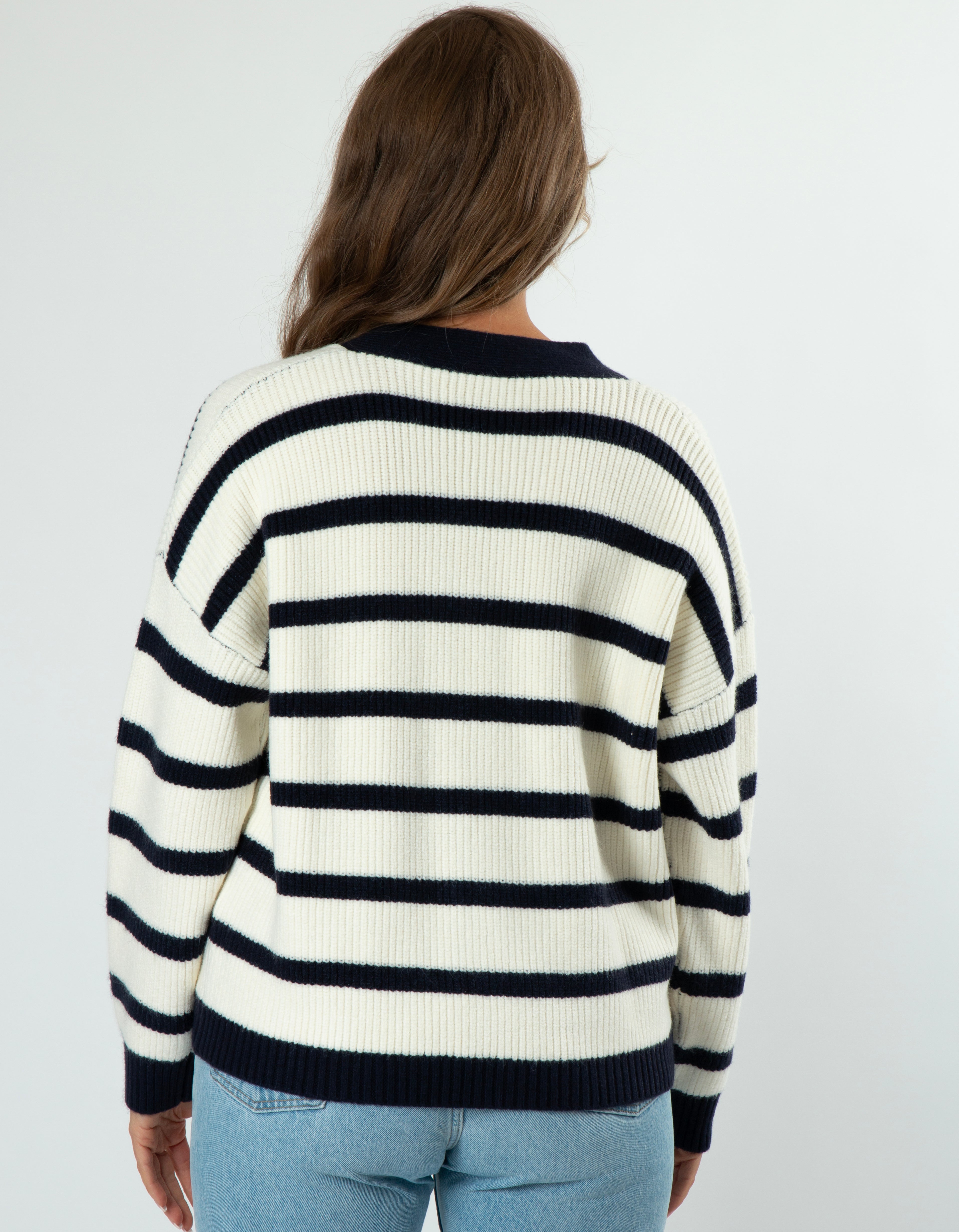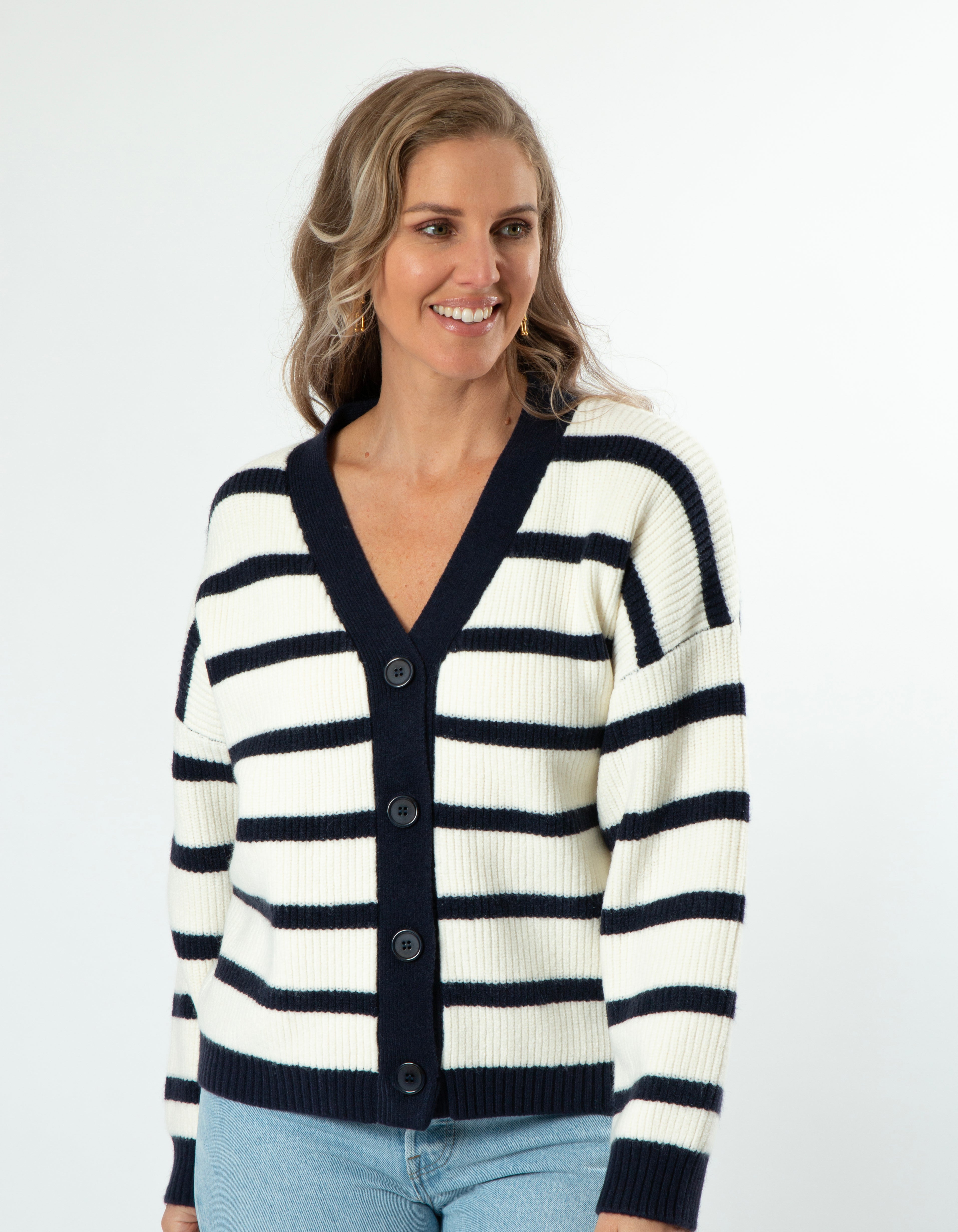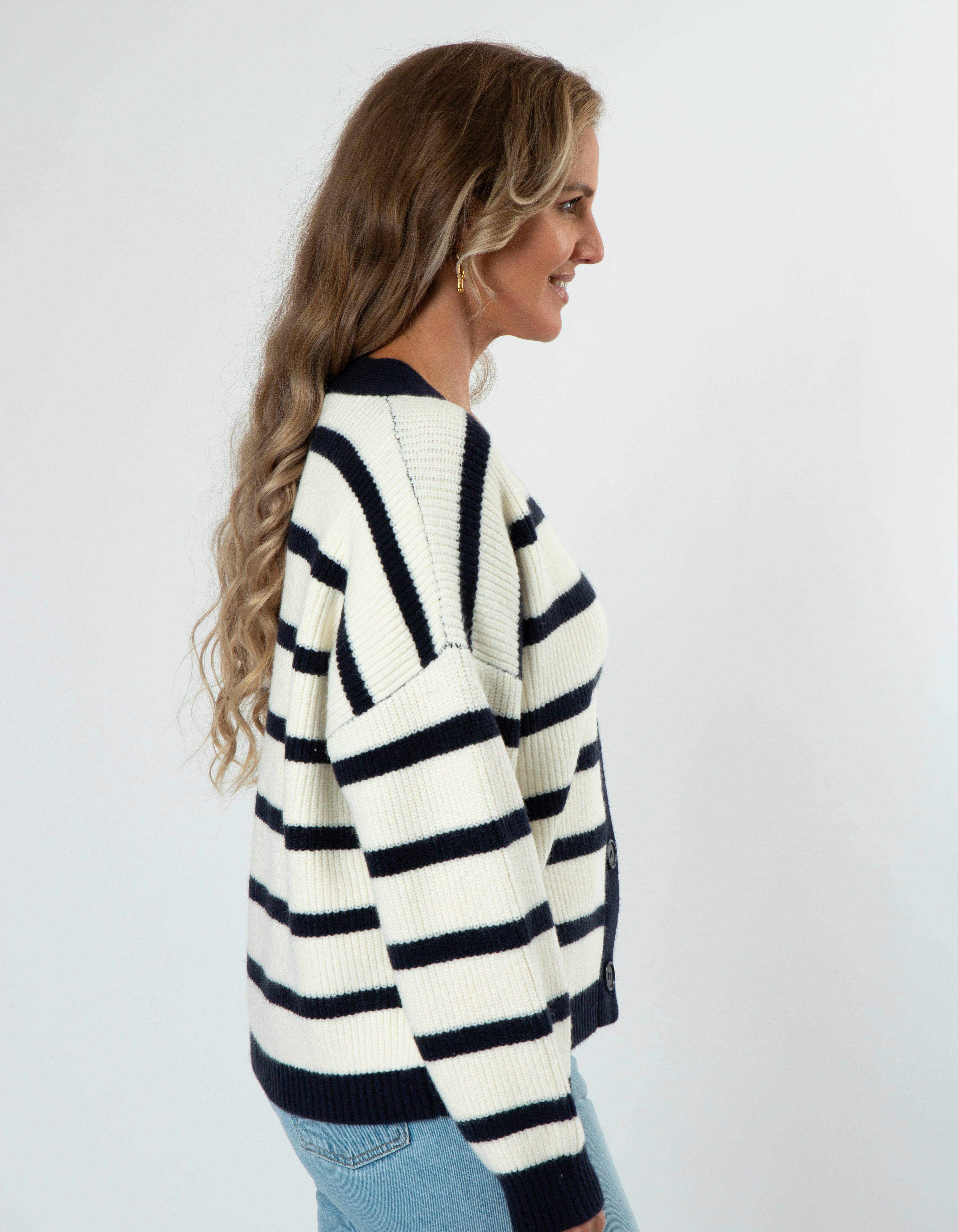 Greyson Cardigan - White/Navy Stripe