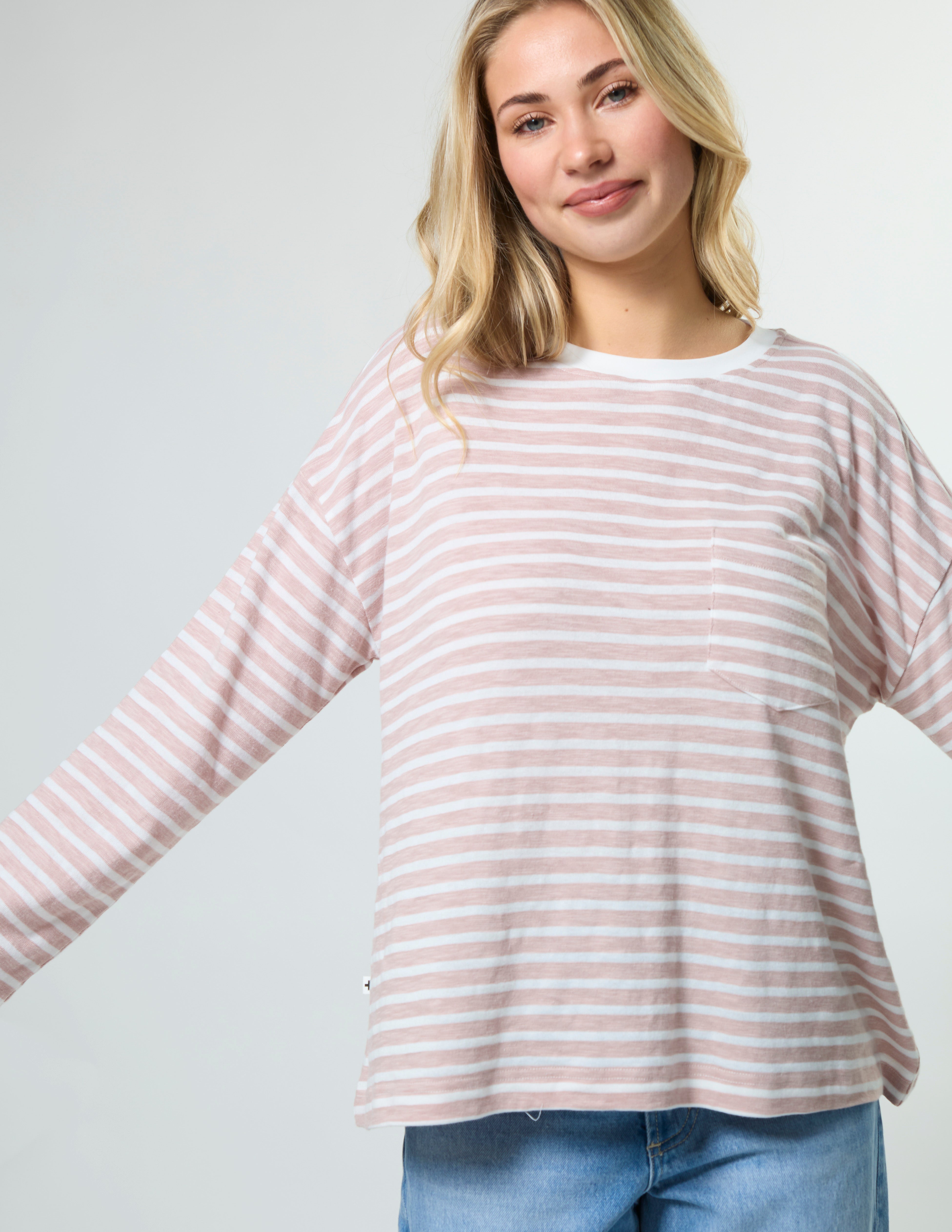 Drop Shoulder Tee - Petal Stripe